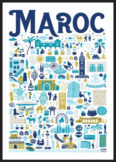 L’illustratrice Marion the Beef nous livre ici une illustration riche en petit détail qui font le Maroc que nous aimons tant. /// The illustrator Marion the Beef gives us here an illustration rich in small details that make the Morocco that we love so much.